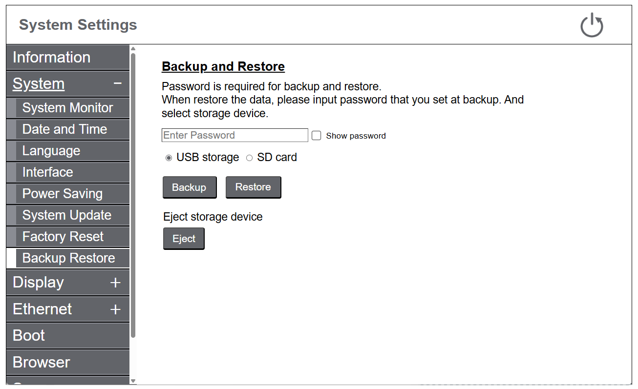 5. Accedere a System Settings. Nel menu, selezionare System > Backup Restore.