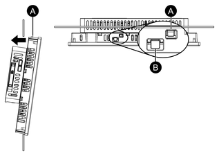 - パネルカット寸法に従って、パネルに取り付け穴を開け、製品を前面側から取り付けます。