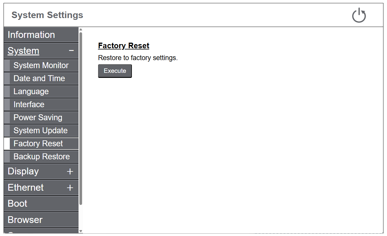 이 제품을 구매 당시의 상태로 복원할 수 있습니다. 관리자 계정으로만 이 기능을 수행할 수 있습니다.