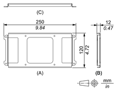 선택 사항인 VESA 마운팅 플레이트를 부착하면 제품을 VESA 표준(100 x 100 mm [3.93 x 3.93 in])을 준수하는 시판되는 모니터 암이나 벽면 장착 어댑터에 장착할 수 있습니다.