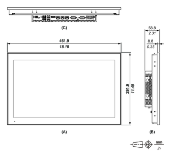 外部尺寸(19 英寸宽屏)
