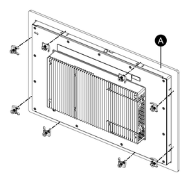 - Führen Sie die Montagehalter in die Halterungsöffnungen oben, unten, links und rechts ein, und ziehen Sie die Schrauben mit einem Schraubendreher nach und nach abwechselnd diagonal angeordneten Schrauben fest.