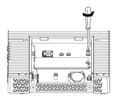 - Coloque la tapa de la escotilla y apriete el tornillo.NOTA: El par de apriete necesario es de 0,2 N•m (1,8 lb-in).