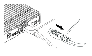 2. Afloje el sujetacables de la abrazadera de USB en el puerto inferior.