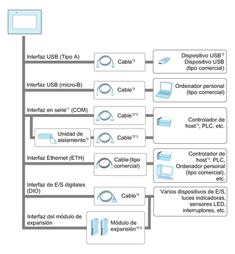 *5 Se pueden conectar hasta dos módulos TM3 a la parte posterior del producto. Pueden utilizarse accesorios opcionales para aumentar el número de conexiones TM3. Consulte Instalación del módulo de expansión.