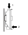 1. Posizionare l'incavo superiore dell'adattatore di montaggio del Modulo Posteriore sul bordo superiore del binario DIN.