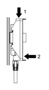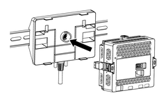 - Push down on the adapter until the bottom groove of the installation adapter fits under the DIN rail.