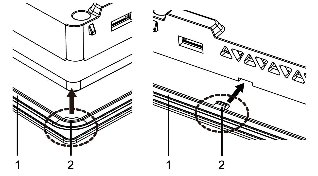 Attach the new gasket to this product. Insert the protrusions from the four corners of the gasket into the corresponding holes in the corners of this product. Depending on your model, there may be additional protrusions. In the following, refer to the figure on the right and insert the protrusions accordingly. NOTE: When using a tool to insert the gasket, make sure