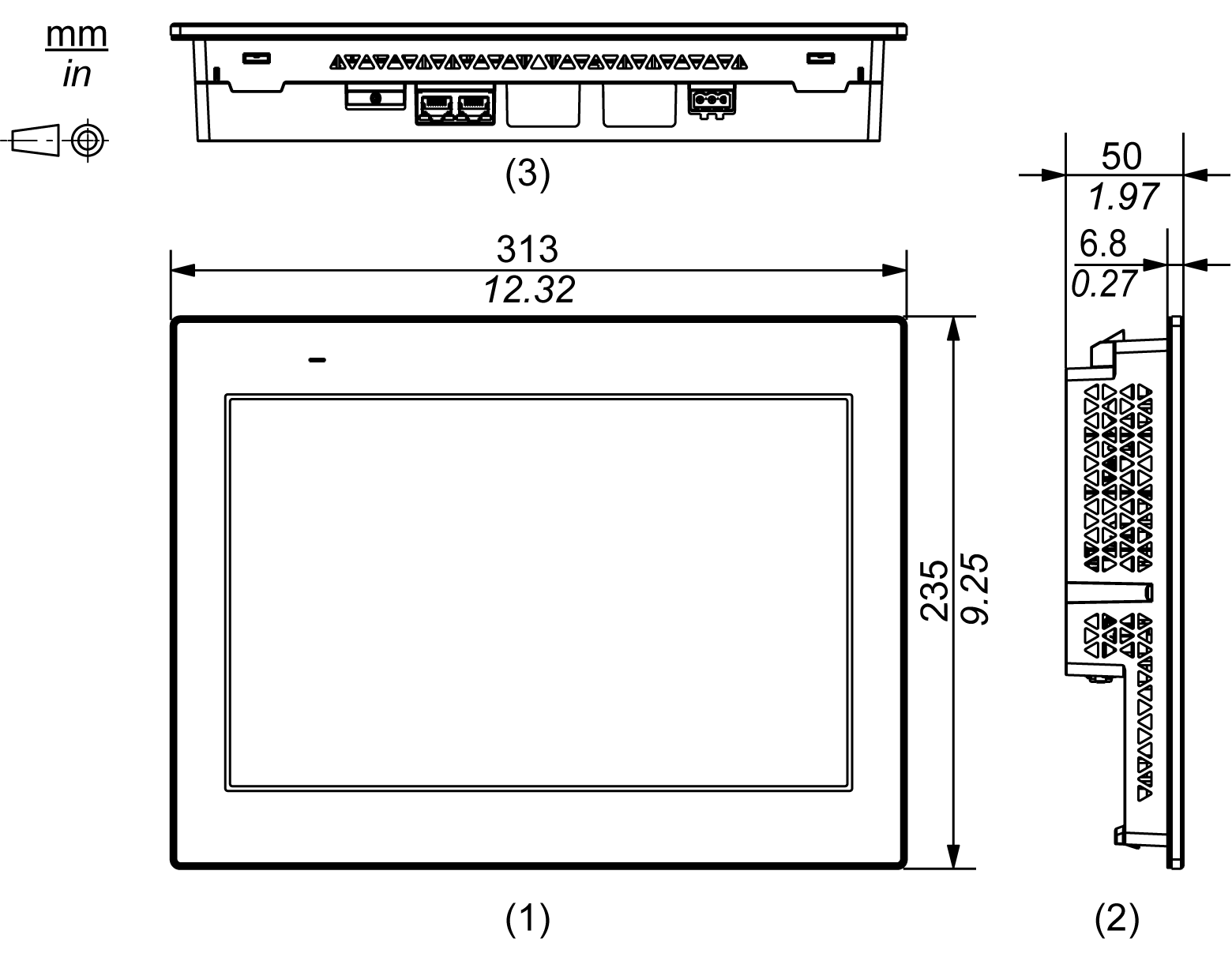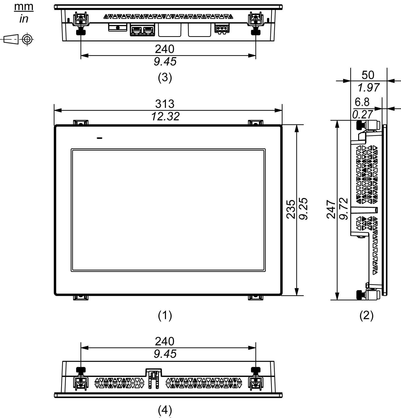 Abmessungen mit Montagehaltern