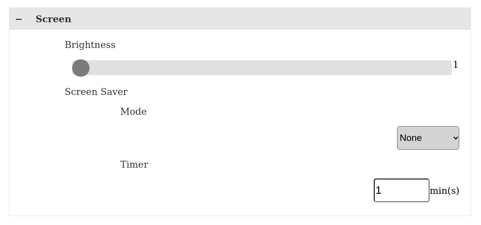 Digitare la durata di tempo dall'ultima immissione nella schermata a quando si avvia il salvaschermo. Le durate sono da 1 a 30 minuti.