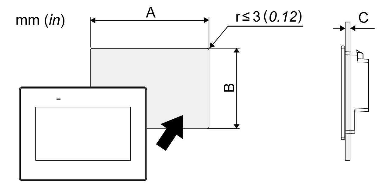 In base alle dimensioni dell'apertura del pannello, aprire un foro di montaggio sul pannello.