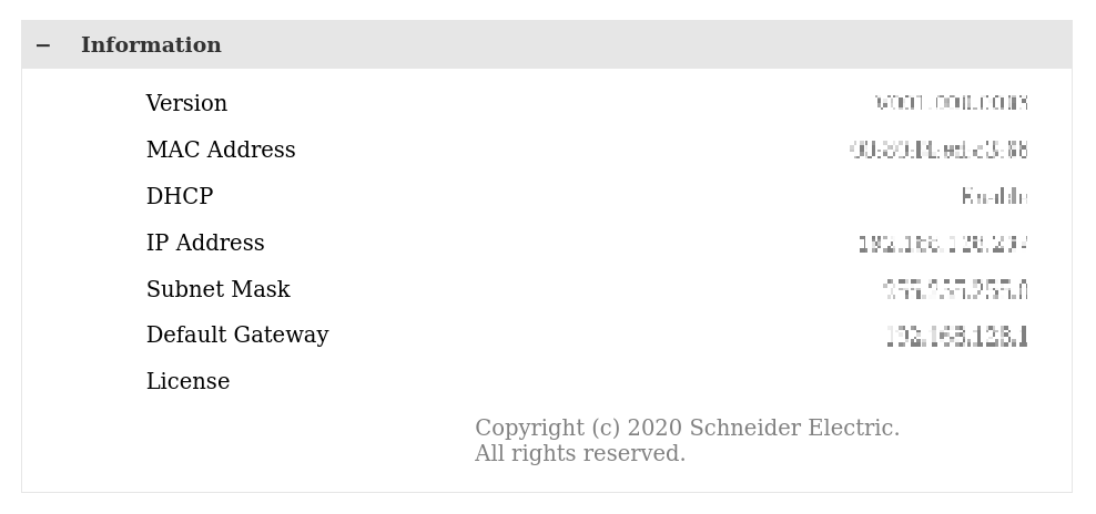 本製品のシステムバージョン、IP アドレス等のネットワーク情報、および製品内部で使用されているソフトウェアのライセンス情報が表示されます。