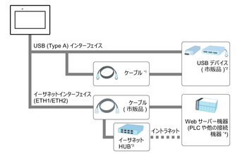 Java Script をサポートする HTML5 サーバー (Web サーバー機能を持つ HMI や IPC 製品、PLC などの接続機器*1) に接続できます。最大 10 台の Web サーバー機器に接続できます。