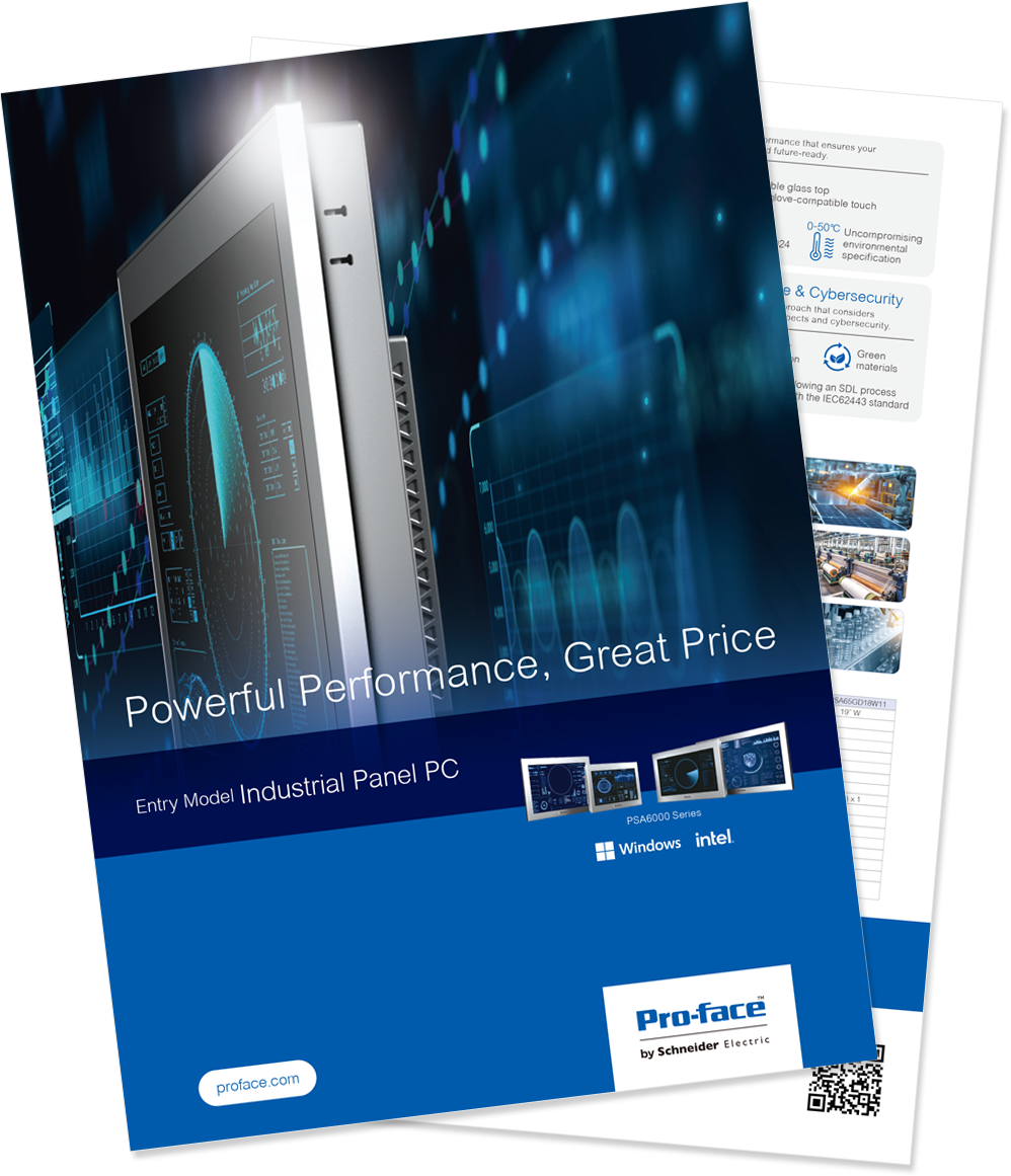 This leaflet introduces the PSA6000 Series, an entry-level industrial panel PC that combines powerful performance with cost efficiency, featuring Windows 11 IoT Enterprise, ultra-slim design, glove-compatible touch, and compliance with environmental and cybersecurity standards.Terms of use / Cautions
