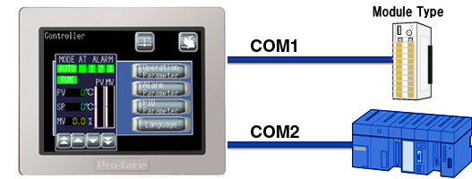 You can connect the temperature controller with PLC connected by using the multi-protocol feature of LT4000M Series.