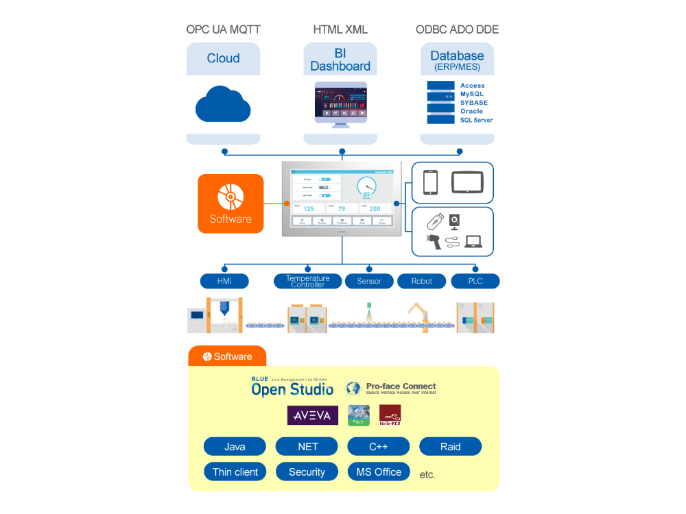Tailored visualization per user’s needs using Business Intelligence Dashboards. Integrated applications from a leader in HMI software with BLUE Open Studio.