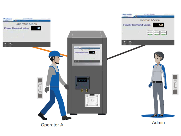 - The HMI automatically adjusts its security level and displays the corresponding screen.