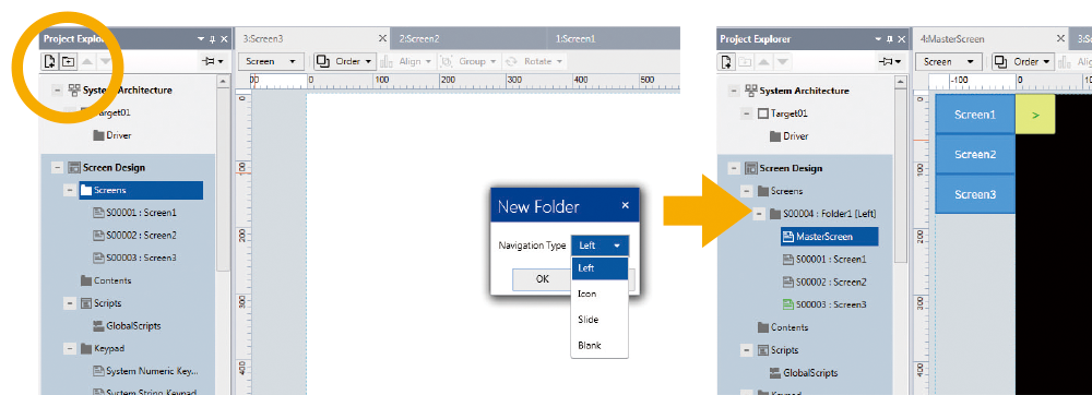 Avec la fonction de navigation, il n'est plus nécessaire de créer des boutons de changement d'écran.