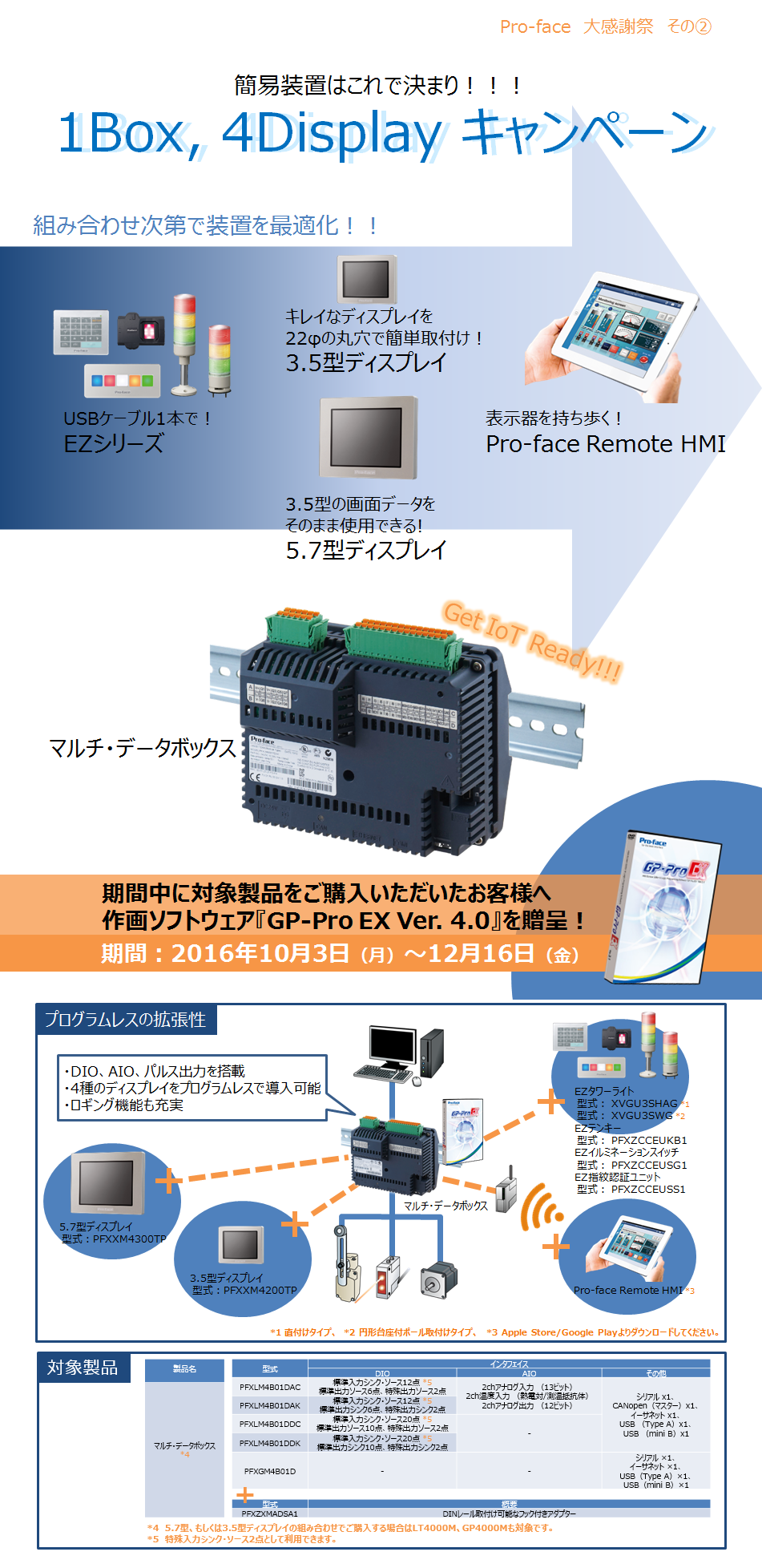 期間中に対象製品をご購入いただいたお客様へ作画ソフトウェア「GP-Pro EX Ver. 4.0」(DVD)をプレゼント! | ||||||||||||||||||||||||||