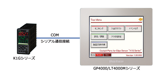 GP4000/LT4000Mシリーズとアズビル株式会社製 高精度位置計測センサK1Gを接続することで、GP4000/LT4000MシリーズをK1Gの設定・管理支援ツールとして利用することが可能になります。