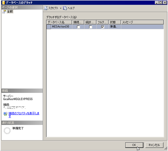1.3 [データベースのデタッチ]画面で[OK]をクリックしてください。