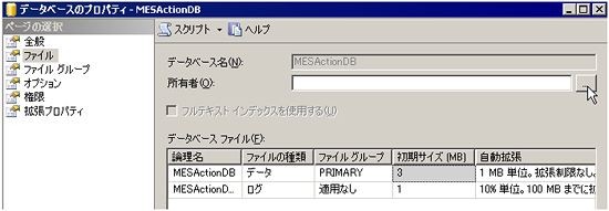 5.7 [データベースのプロパティ]画面で、[ページの選択]欄から[ファイル]をクリックして、[所有者]欄の右横にあるボタンをクリックしてください。
