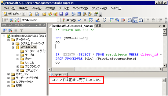 1.4 オブジェクトエクスプローラに MESActionDB データベースが表示されていないことを確認してください。
