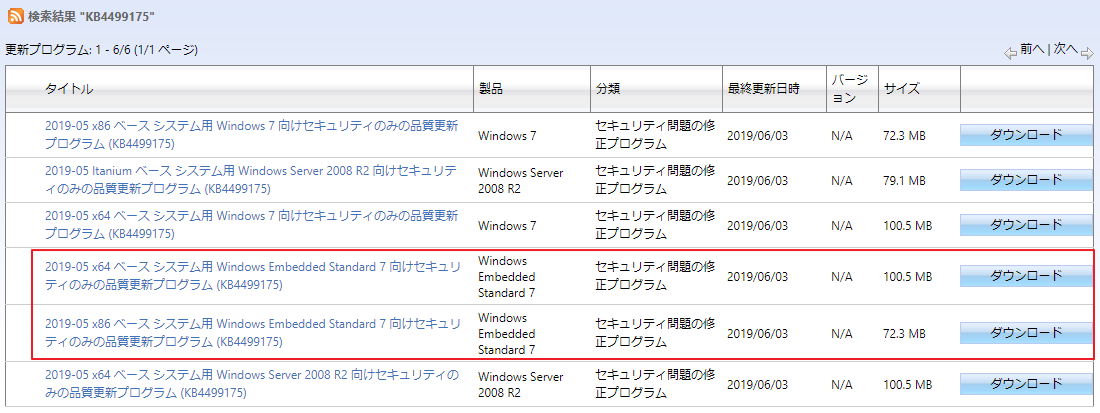 3. 更新プログラムから赤枠のプログラムをダウンロードしていただき、適用してください。