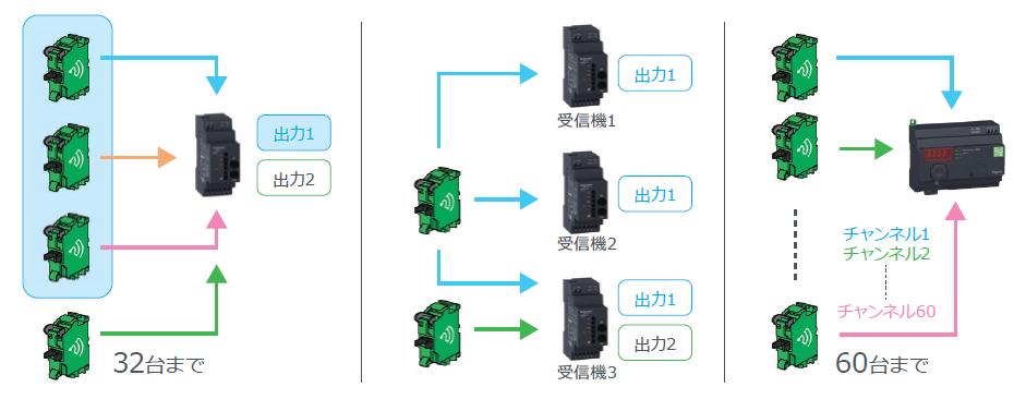 2Ch リレー出力、4Ch PNP出力、シリアル、イーサネットの多様な出力バリエーションの受信機を取り揃えています。