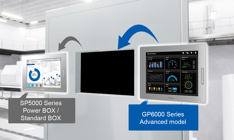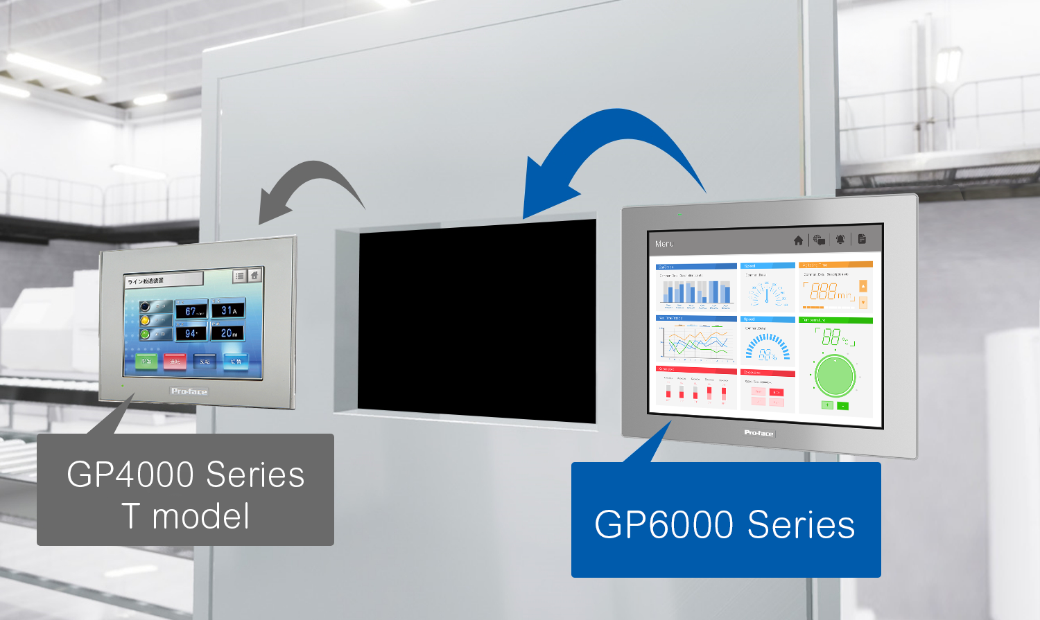 GP6000シリーズは従来モデルと同じパネルカット寸法で、盤の穴の再加工が不要です。コネクター位置もほぼ互換性があり、取り付けが容易です。GP6000シリーズへの置換えBOOKもご用意しており、従来からの作画資産も流用可能でスマートな移行を実現します。