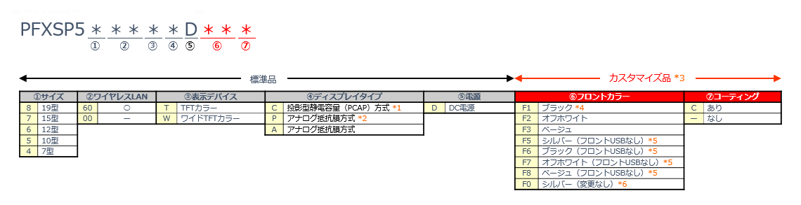 *6 フロントカラーを標準のシルバーのままで、コーティング対応のみ行う場合はF0になります。