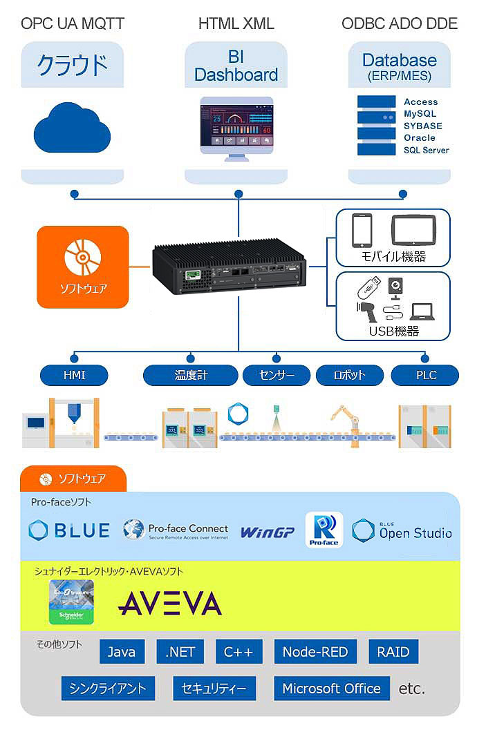 また、Pro-faceやシュナイダーが持つ豊富なソフトウェアによって、より高い表現力を持った HMI構築や製造現場DXの推進を支援します。