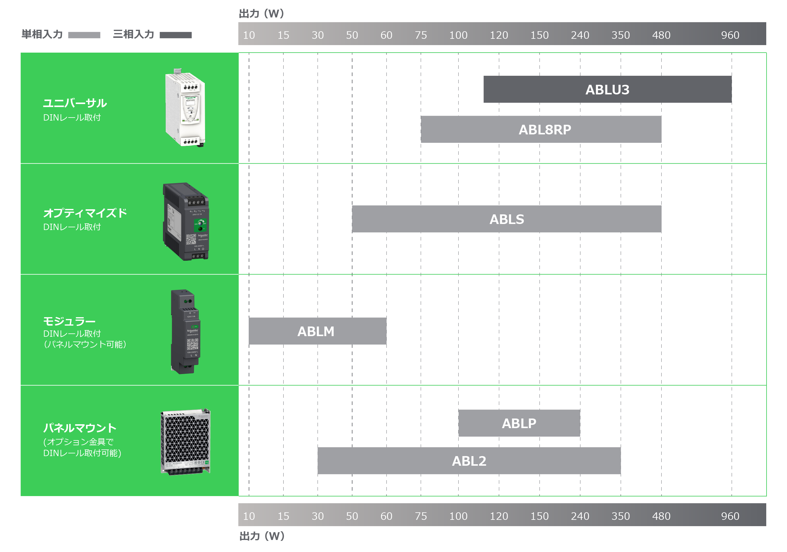 スイッチング電源 Modiconパワーサプライ ラインアップ
