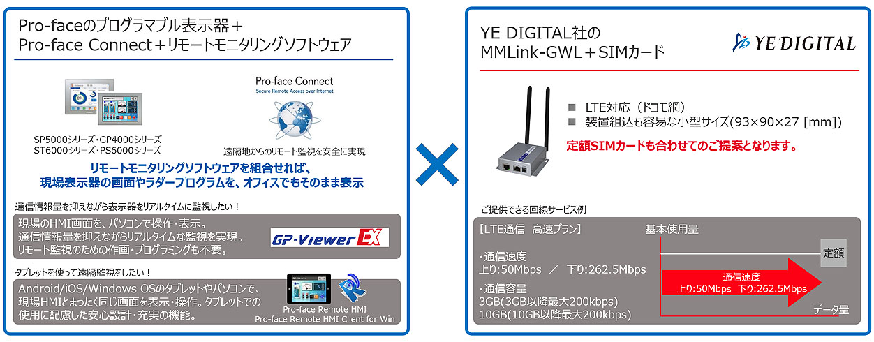 プログラマブル表示器からセキュアな通信、通信端末・SIMカードまで、安全な遠隔監視に必要なソリューションをまとめてご提案します。面倒な機器選定や、通信会社との個別契約の手間も削減できます。