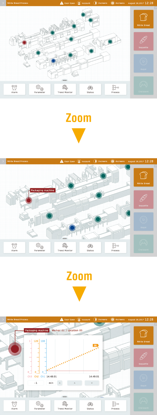 普段、表示の必要がない情報は小さく表示。見たい時には大きく表示。そんな振る舞いがHMIで可能になります。