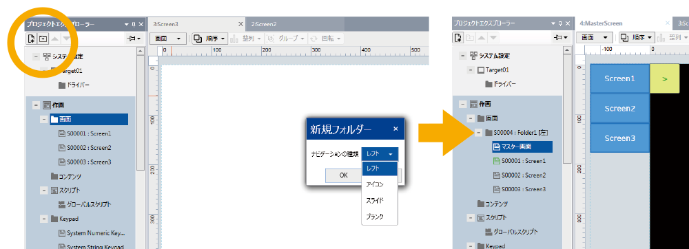 ナビゲーション機能を使用すれば、画面変更のためのスイッチ作成は不要。