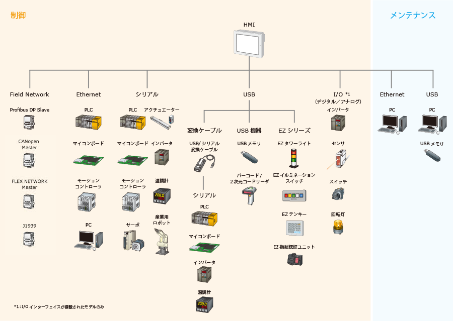 ひとつの画面から複数の機器と通信できるので、機器ごとに画面作成する手間がなくなります。