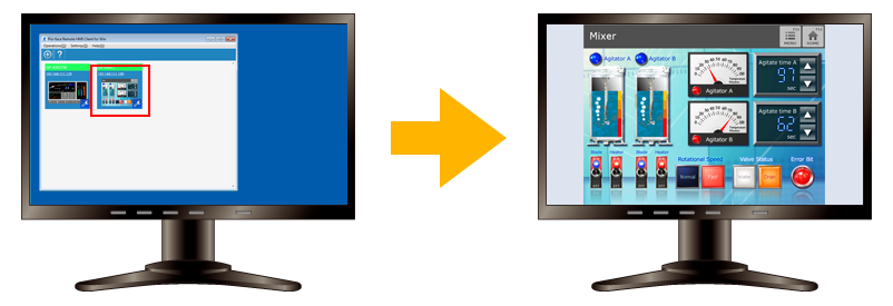 Pro-face Remote HMI Client for Winは、通信モードを同期/非同期に切り替えることができます。