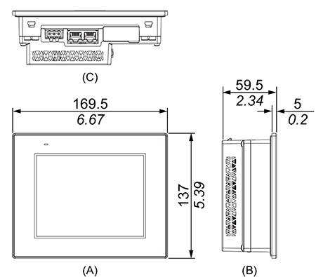 | 保護等級 | IP65F、UL 50/50E、タイプ 1、タイプ 4X (室内専用)、タイプ 12、タイプ 13 (パネル埋込時のフロント面) |