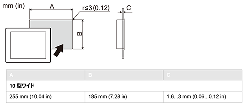 | パネルカット寸法 | 255(+1/-0)x 185(+1/-0)mm 、パネル厚範囲:1.6~5 mm |