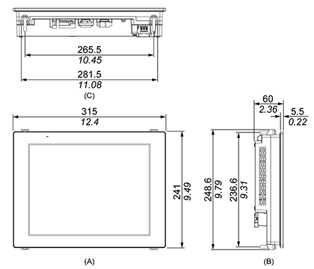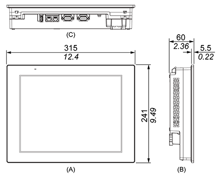| 保護等級 | IP65F、UL 50/50E、タイプ 1、タイプ 4X (室内専用)、タイプ 12、タイプ 13 (パネル埋込時のフロント面) |