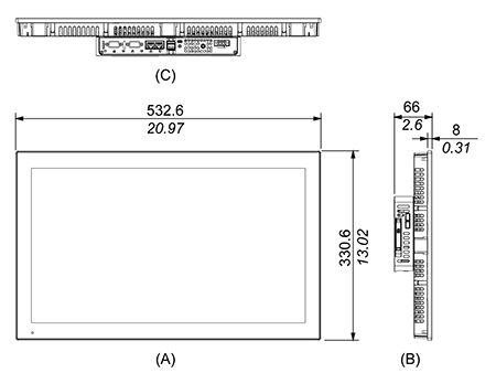 | パネルカット寸法 | 518.5(+1/-0)x 316.5(+1/-0)mm 、パネル厚範囲:1.6~5 mm |