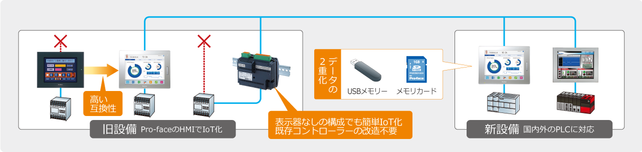 Pro-faceのハードウェア、ソフトウェアを使用することで、IoT化の小さな一歩を実現できます。