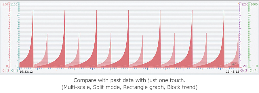 한 번의 터치로, 기록 된 과거 자료와 비교! (멀티스케일 표시, 분할 표시 모드, 비교 표시, 블럭 트렌드)