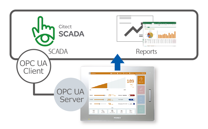 HMI를 OPC서버로 각종 OPC UA 클라이언트와 연결하여 데이터 연계를 할 수있습니다.