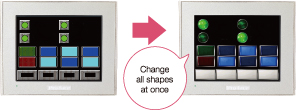 GP-Pro EX 는 다른 모양의 파트를 일괄 변환 할 수 있어서, 이전에 작성된 프로젝트 파일의 이미지를 간편히 갱신할 수 있습니다.